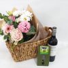 The combination of a pretty posy, box of locally made Baba Lila Chocolates and your choice of Wine or sparkling wine presented in a gorgeous reusable basket.