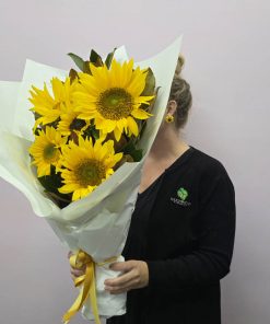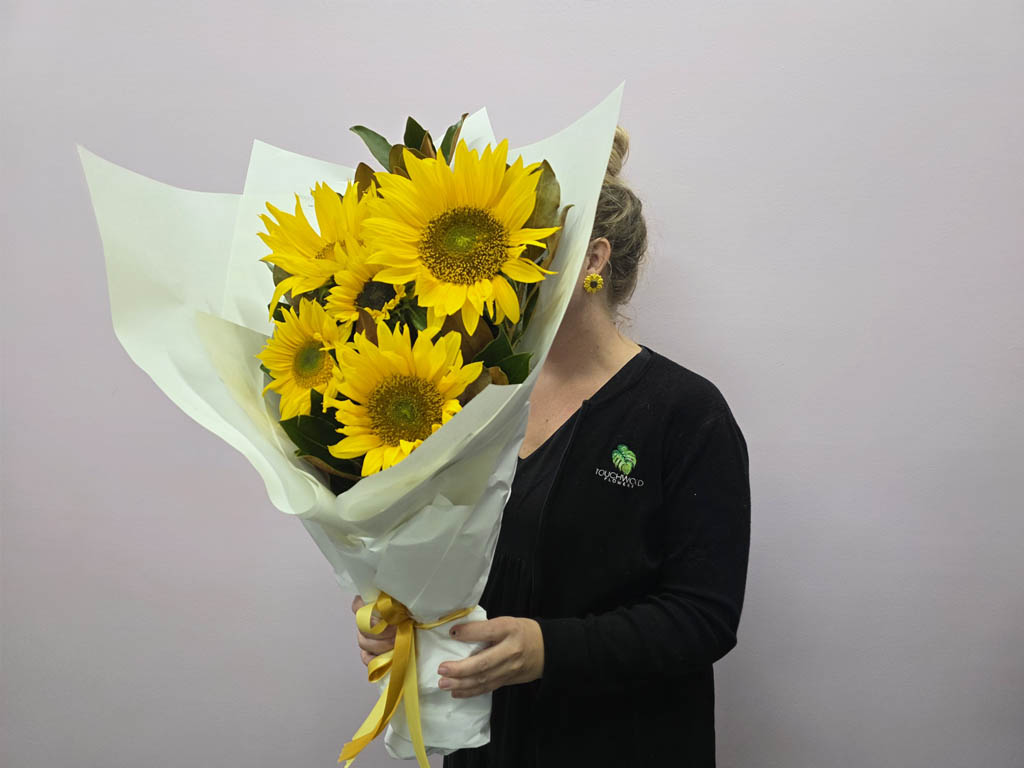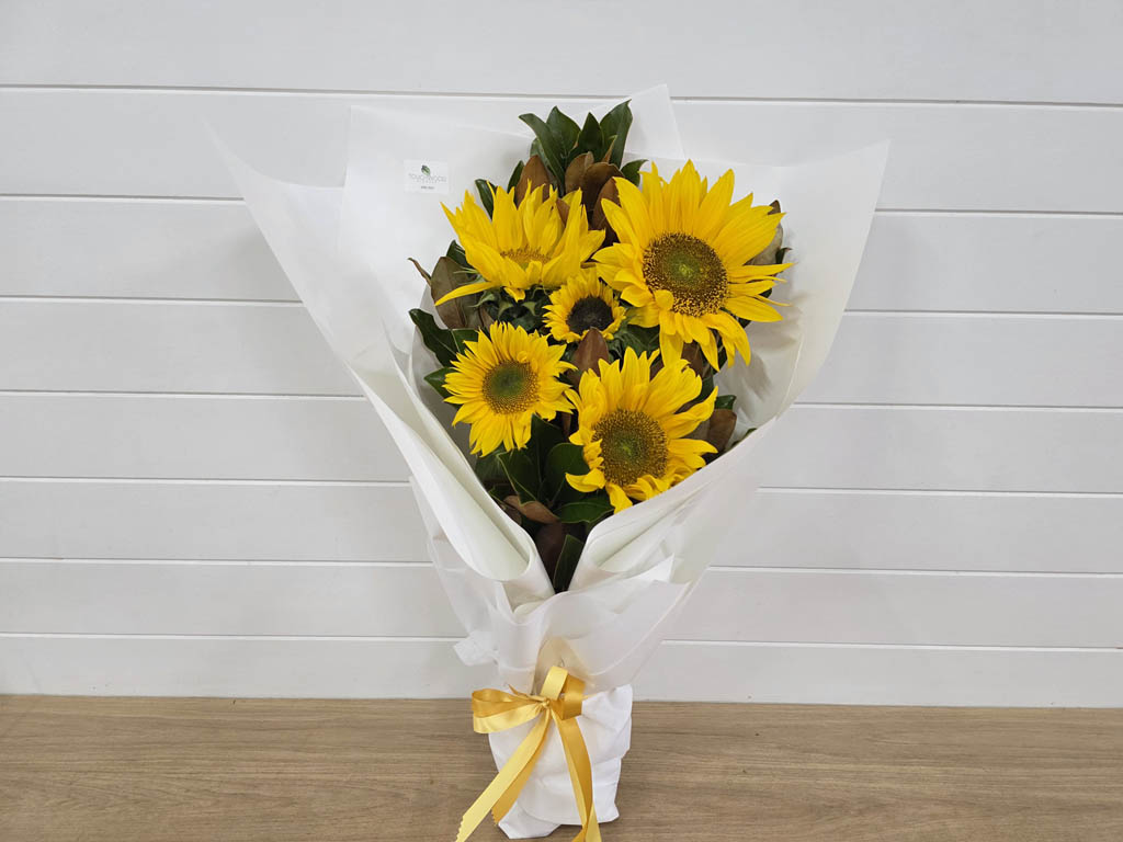 Bright, bold and full of cheer – this striking bouquet of sunflowers is the ultimate symbol of happiness. Designed en masse for maximum impact. Perfect for birthdays, celebrations, or simply bringing sunshine indoors, this bouquet makes a statement of pure joy.